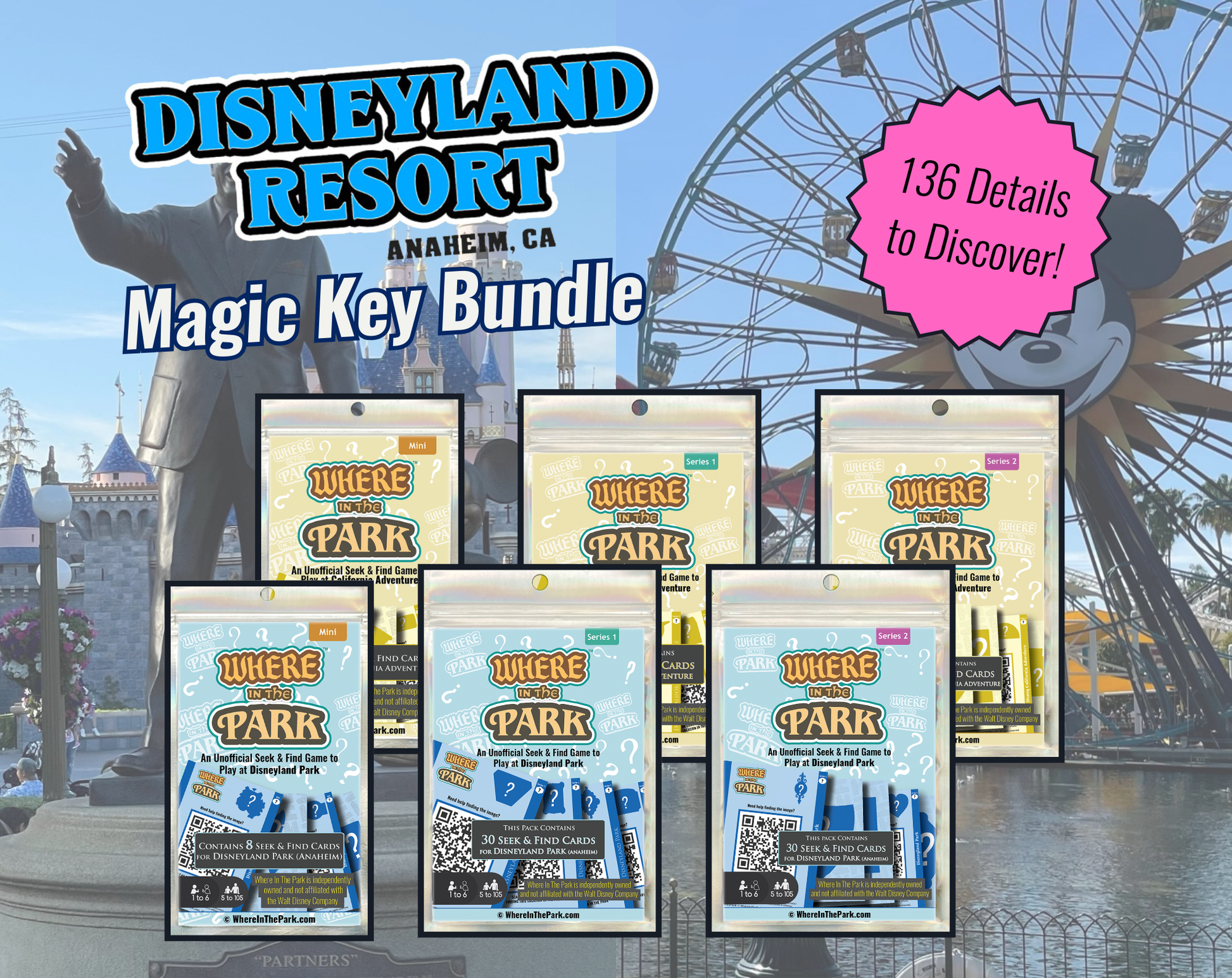 Experience the magic of the Disneyland Resort like never before with the Where In The Park Magic Key Bundle! This all-in-one collection includes 136 hidden images to discover across Disneyland Park and Disney California Adventure, offering hours of fun, exploration, and unforgettable memories.
